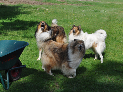 Šķūņa galā pēkšņi uzradusies malkas grēda un izauguši krūmi! Mūsu līgobilde 2025. Virs manis iekārtojies Hosento, bet blakus man Lociņš un Dana.