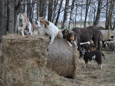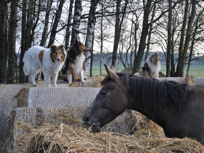 dzīvojamies pa siena ruļļiem. |