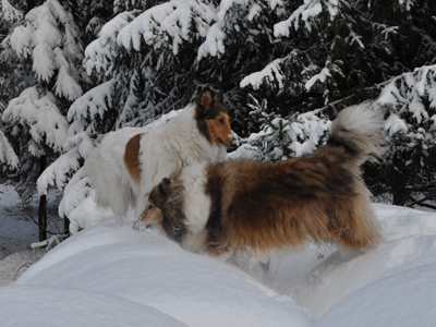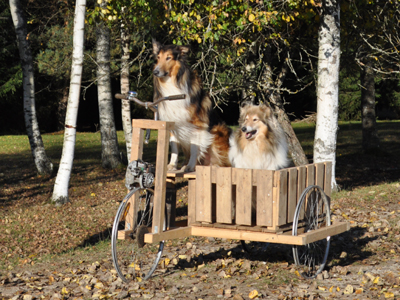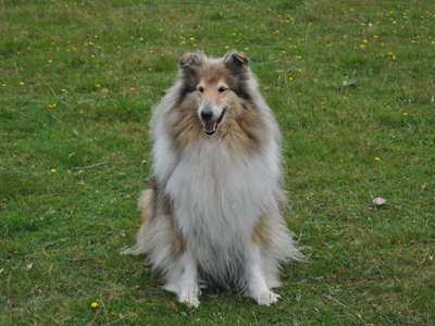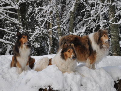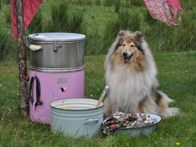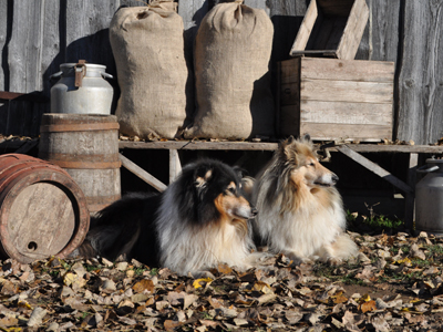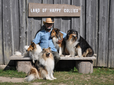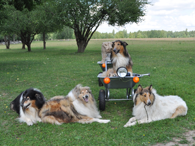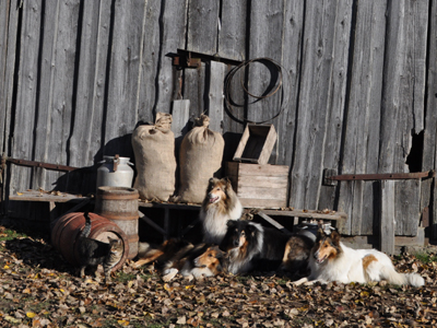 Pieci kolliji no "Laimīgo kolliju zemes": es priekšā, bet uz soliņa Dana, Vecais Kollijs, Hosento un Loča.
